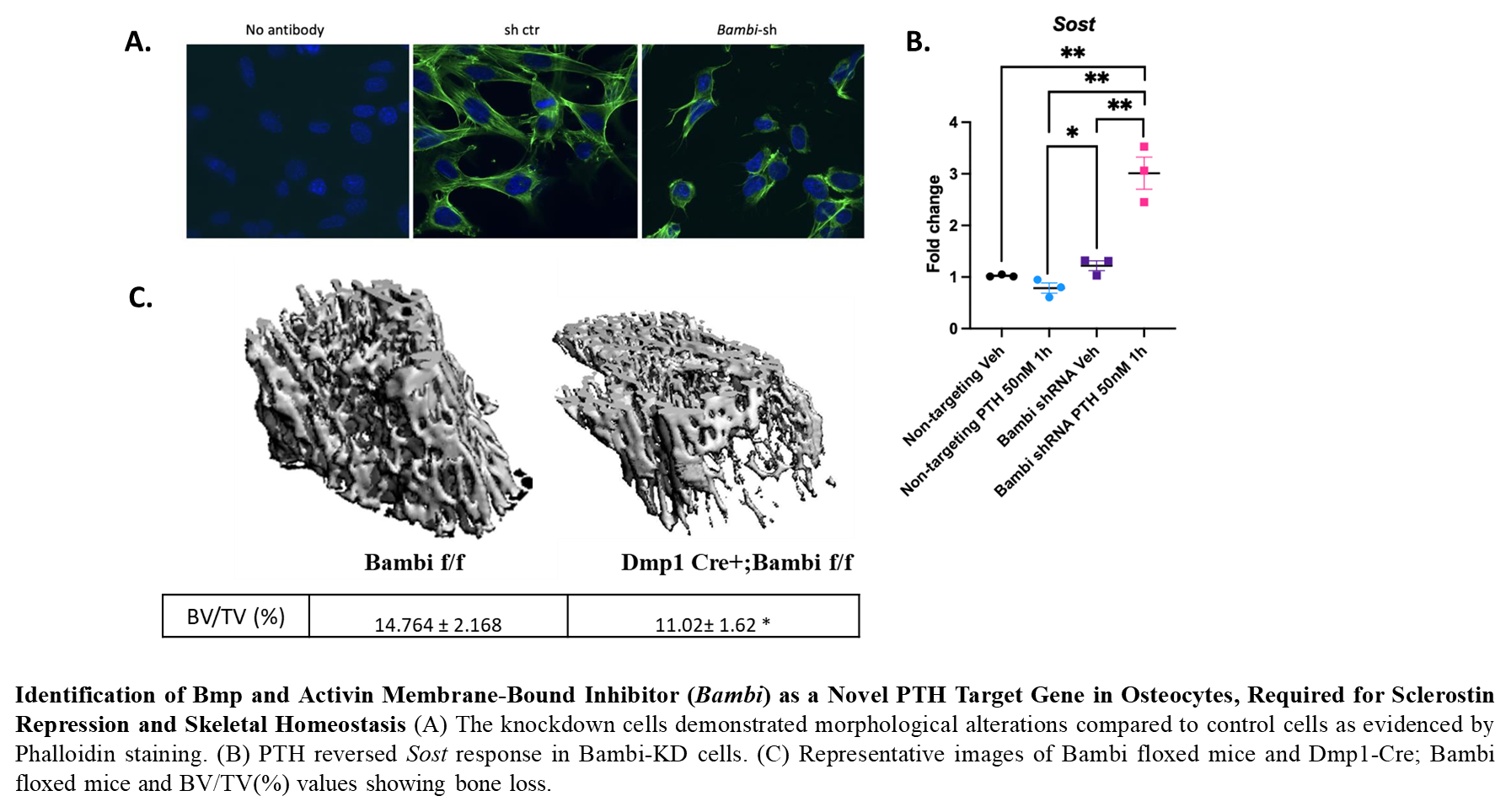 Pour en savoir + : 1123 - Identification of Bmp and Activin Membrane-Bound Inhibitor (Bambi) as a Novel PTH Target Gene in Osteocytes, Required for Sclerostin Repression and Skeletal Homeostasis. Kalpana Patel and al. ASBMR Meeting 2025.