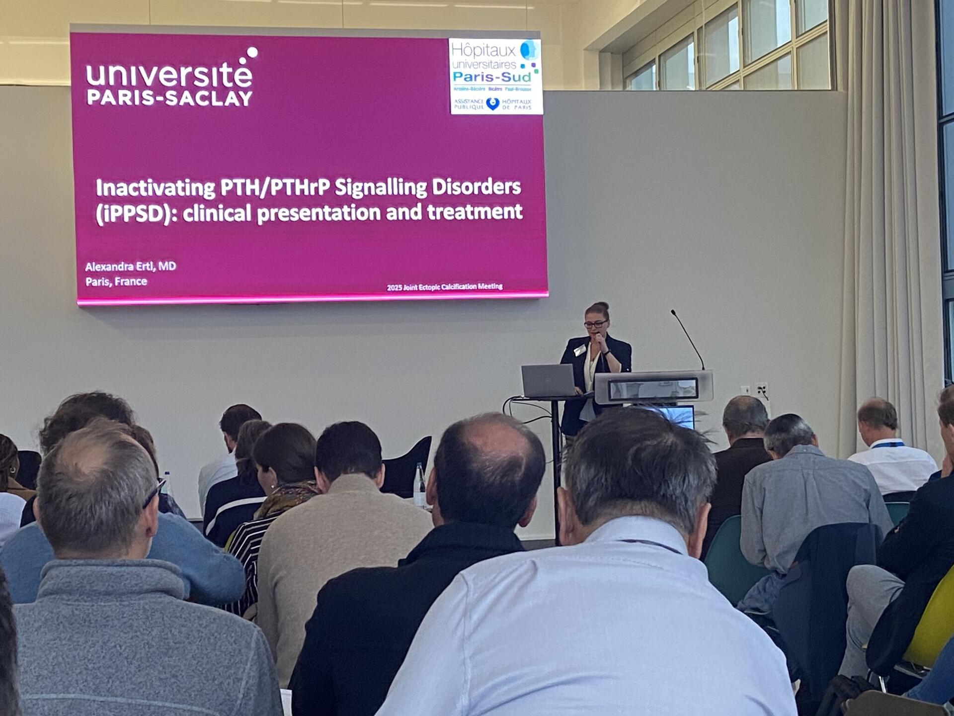 Alexandra ERTL (Paris, France) a exposé le cadre des iPPSD, en rappelant que des observations cliniques initiales (dysmorphie faciale, obésité, anomalies des doigts/mains puis ossifications) ont conduit, dans les années 1940–50, à la description par Albright et Lowe de l’AOH (Albright’s hereditary osteodystrophy )et, une décennie plus tard, au terme PPHP pour les tableaux AOH sans résistance à la PTH. Dans les années 1970, le mécanisme est élucidé : la signalisation récepteur PTH/PTHrP → protéine Gsα → adénylate cyclase → AMPc → PKA. Les défauts d’activation de cette voie (souvent via GNAS) expliquent les résistances hormonales et les phénotypes squelettiques/ossifications.