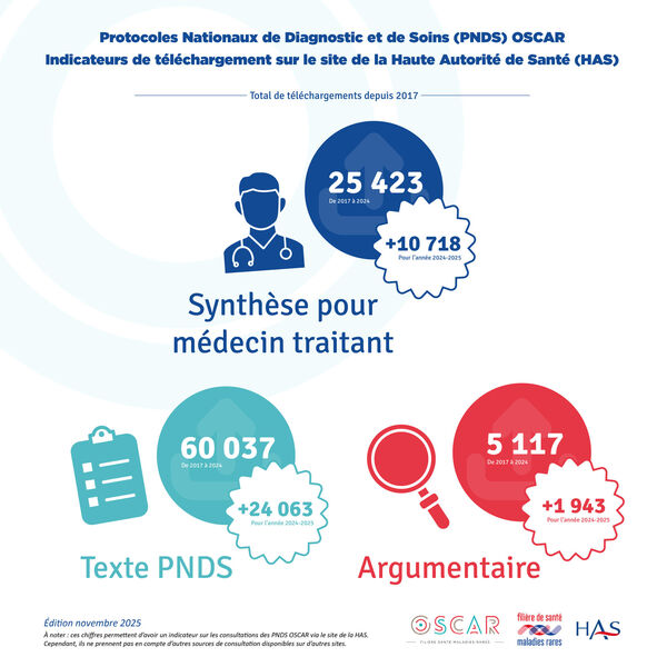 Depuis leur mise en ligne, la Haute Autorité de Santé (HAS) a collecté des données précises sur le nombre de téléchargements des PNDS de la filière, jusqu'à novembre 2025. Ces indicateurs fournissent une vision claire de l'utilisation de ces protocoles par les professionnels de santé.